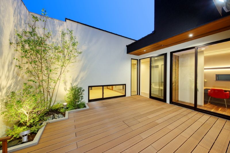 - 幼い子供さんのいる家庭では、親の目に届く遊び場としても活躍。また、植栽や。中庭をライトアップすることでお店のような雰囲気での食事田バーベキューなど、大人も子供も楽しめる空間になります。