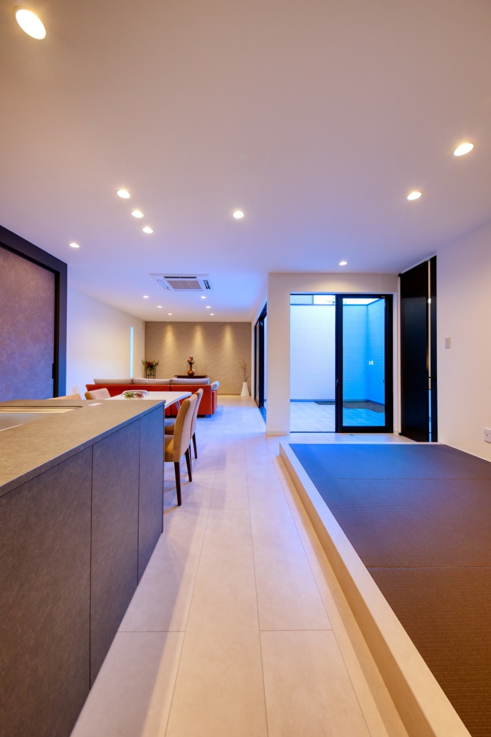 ホーム フォトギャラリー タイプ別 中庭Lの字 子育てに嬉しい小上がり付き30畳LDKと家事ラク回遊動線のある住まい 子育てに嬉しい小上がり付き30畳LDKと家事ラク回遊動線のある住まい タイプ別|中庭Lの字 薄グレーのコンクリート調床材を使い、シンプルでクールなインテリア画像のみを表示全 14 枚中 1 枚目を表示Next ≫ LDK内の小上がりタタミコーナー。インテリアに合わせたカラーコーデです画像のみを表示全 14 枚中 2 枚目を表示≪ Prev|Next ≫ 大きく開いた窓からは心地よい風と日差しを取り込みます画像のみを表示全 14 枚中 3 枚目を表示≪ Prev|Next ≫ 画像のみを表示全 14 枚中 4 枚目を表示≪ Prev|Next ≫ 画像のみを表示全 14 枚中 5 枚目を表示≪ Prev|Next ≫ 朝の忙しい時間帯は二人並んで身支度ができますね画像のみを表示全 14 枚中 6 枚目を表示≪ Prev|Next ≫ プライバシーの確保と解放感を備えた中庭画像のみを表示全 14 枚中 7 枚目を表示≪ Prev|Next ≫ 画像のみを表示全 14 枚中 8 枚目を表示≪ Prev|Next ≫ モノトーンでまとめたキッチン廻り 作業性の良い直線的なレイアウト画像のみを表示全 14 枚中 9 枚目を表示≪ Prev|Next ≫ 画像のみを表示全 14 枚中 10 枚目を表示≪ Prev|Next ≫ 寝室横には大型のウォークインクローゼット画像のみを表示全 14 枚中 11 枚目を表示≪ Prev|Next ≫ 画像のみを表示全 14 枚中 12 枚目を表示≪ Prev|Next ≫ 画像のみを表示全 14 枚中 13 枚目を表示≪ Prev|Next ≫ 画像のみを表示全 14 枚中 14 枚目を表示≪ Prev 一覧へ戻る タイプ別 テイスト別 すべて 中庭Lの字 中庭コの字 中庭ロの字 平屋、平屋生活 その他 すべて Light Modern(ライト・モダン) Japanese&Asian(和モダン・アジアン) Elegant(エレガント) Cool(クール) Other(集合住宅・商業空間)